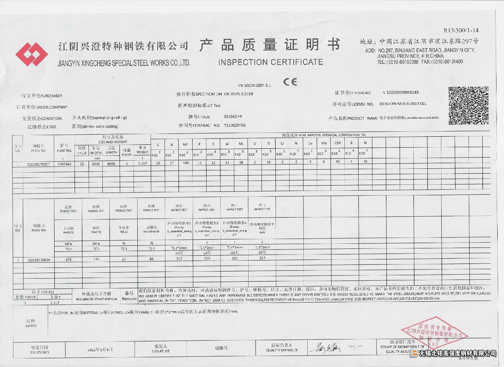 歐標歐標S355K2+N 執行標準EN10025-2:2019 EN10204:2004 3.1 CE認證