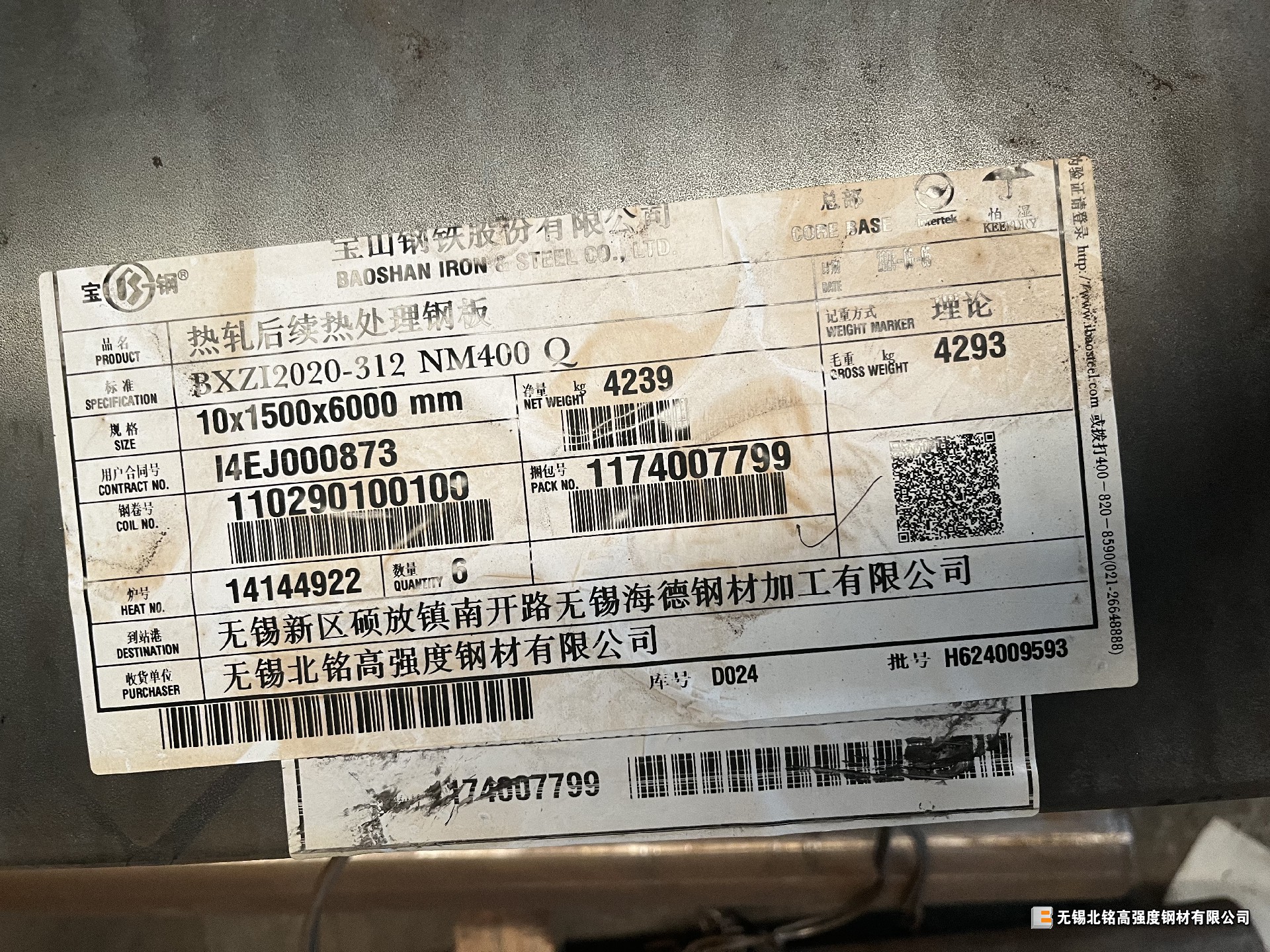 寶鋼股份耐磨板今日入庫明細