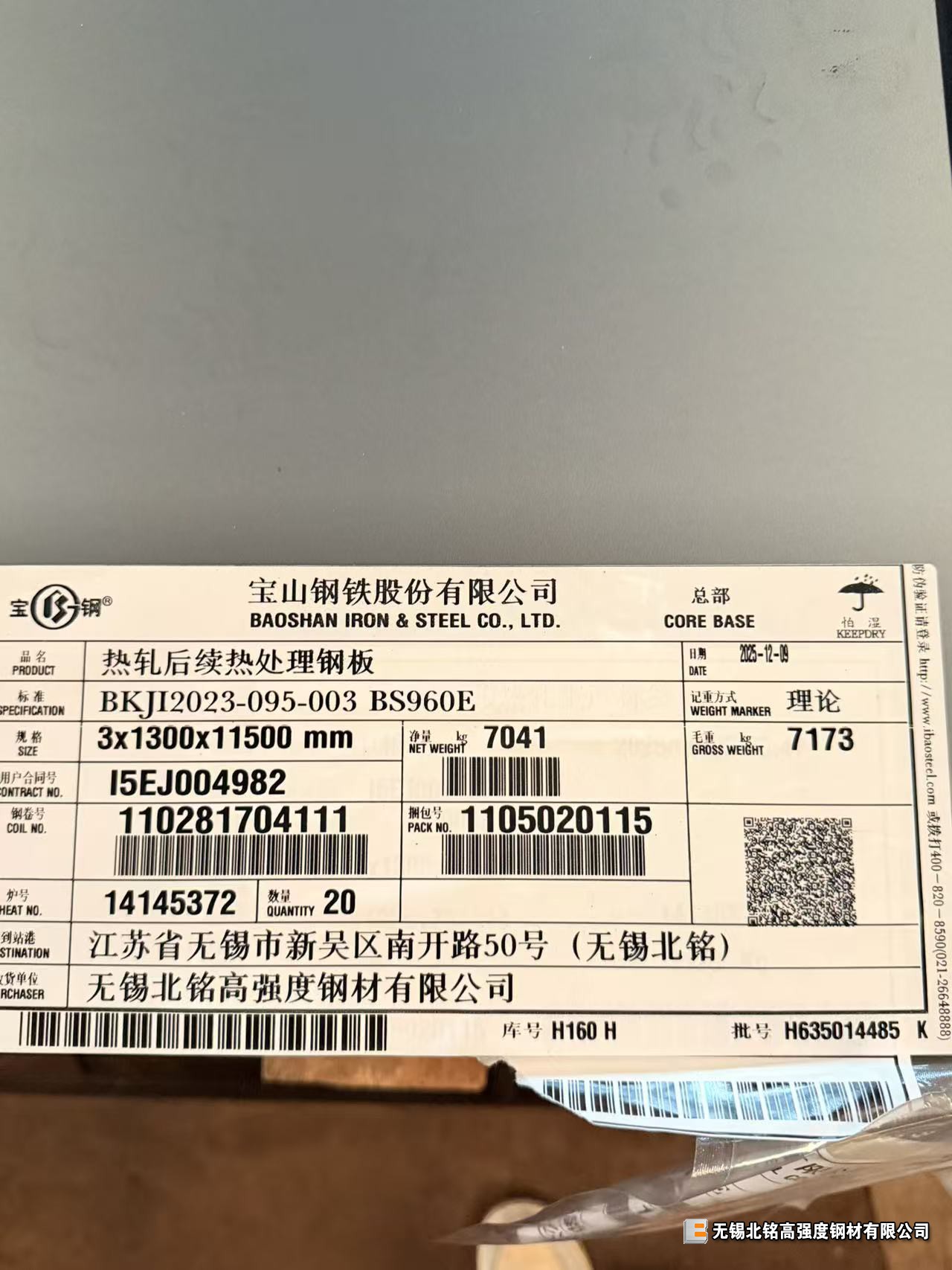 寶鋼超高強(qiáng)鋼BS960E近日已入庫無錫北銘庫,單張起售,歡迎選購!